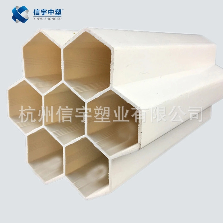 “信宇中塑”牌PVC蜂窩管是以聚氯乙烯(PVC)樹脂為主要原料,以先進的組合配方,經共混擠出成型的一種新型光纜保護套管。產品具有結構緊湊,受力均勻,抗壓強度高,施工成本低,安裝方便等優點,適用于通信光纜的敷設、導向、隔離及保護。